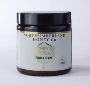 “We are based near to Hadrian’s Wall and we have a lot of walkers passing through daily so we have been asked for a healing foot cream on many occasions. Dry, cracked heals can be easily soothed with the right cream. Our foot cream contains not only honey and beeswax but also Tea tree oil. Tea tree is antimicrobial and has fantastic healing properties, ideal for tired feet.”